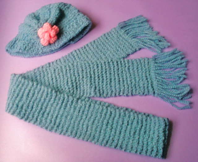 Comecei pelo tricô, com a "prof. Taís", hehe, que acabaram virando um cachecol e um chapéu.